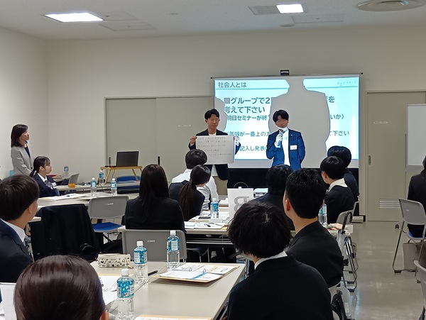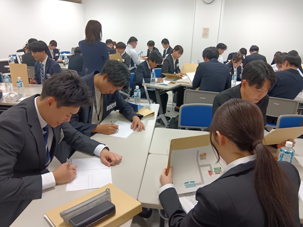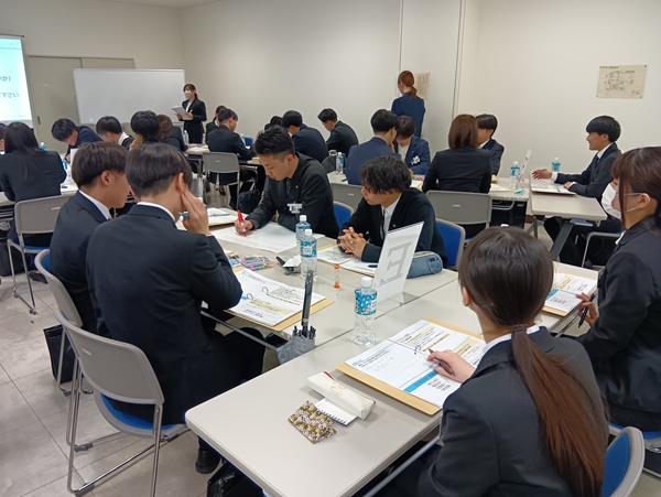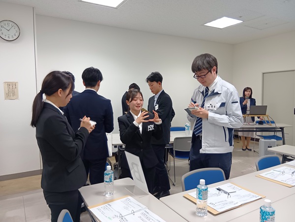 当初は緊張も見られましたが、ワークを重ねる中で高卒・大卒の年齢差を感じさせないほど打ち解け、明るく前向きな雰囲気に変わっていきました。特に、アドバイスを素直に受け入れ、即座に行動へ反映させる姿勢が印象的でした。控えめだった受講生が主体的に発表役を担うなど、役割への挑戦を通じて社会人としての自覚が高まる様子も見られました。